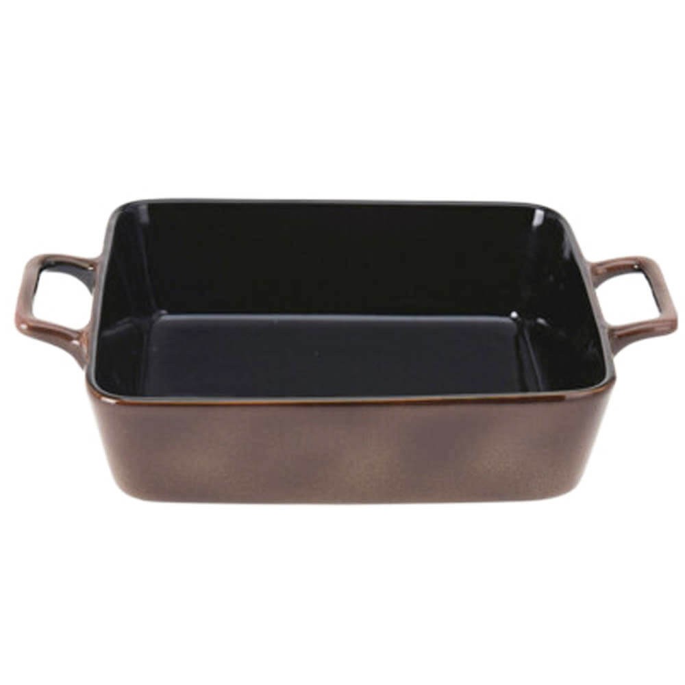 Fuente para horno rectangular con dos cómodas asas para agarrarla de forma segura, realizada en cerámica esmaltada con un atractivo acabado de color, perfecta para asar y gratinar. 4 colores según disponibilidad.