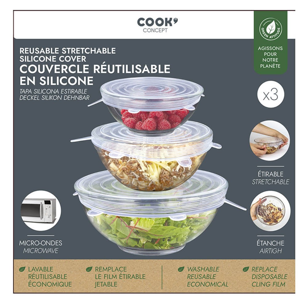 Estas tapas de silicona elástica son una alternativa perfecta al uso de papel film, papel de aluminio o plásticos de un solo uso.