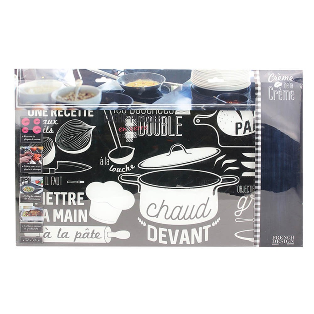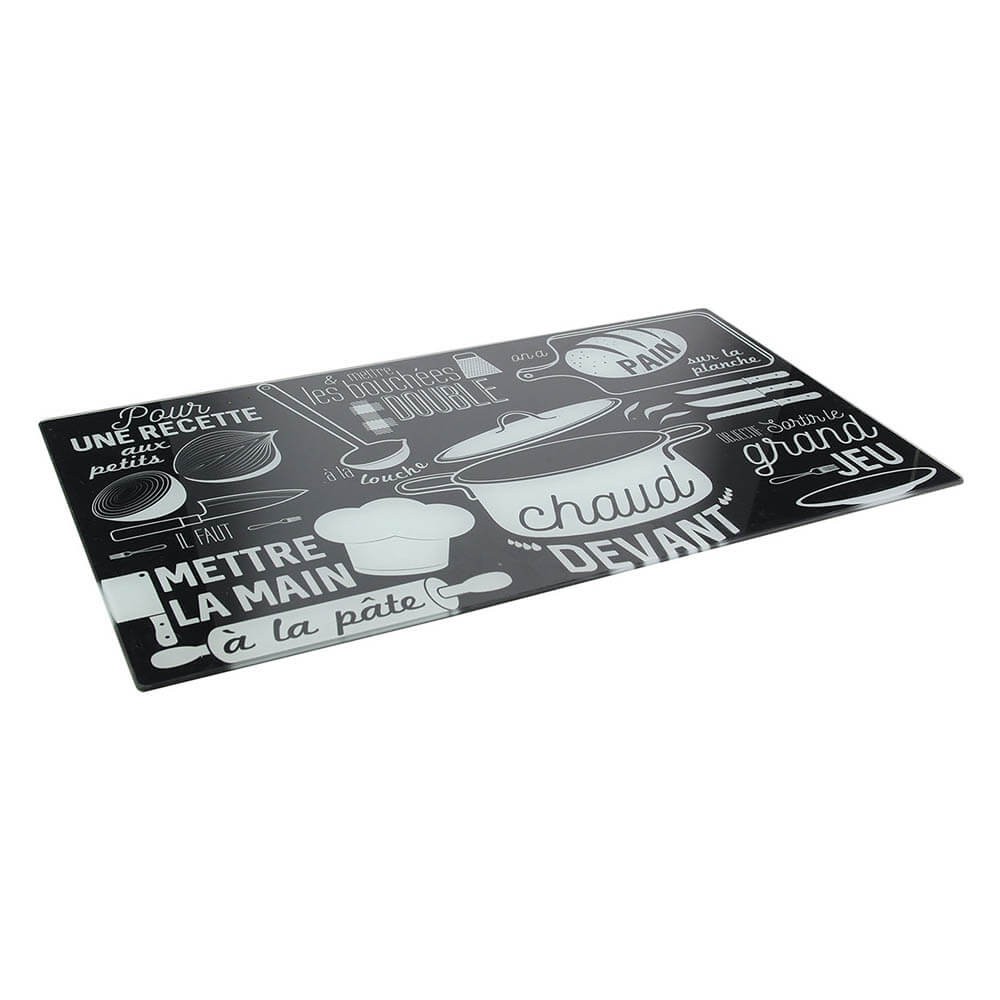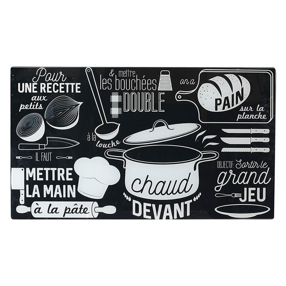 Protector vitro cerámica realizado en vidrio decorado, diseño francés en blanco y negro, perfecto también para ampliar el espacio de trabajo en la cocina.