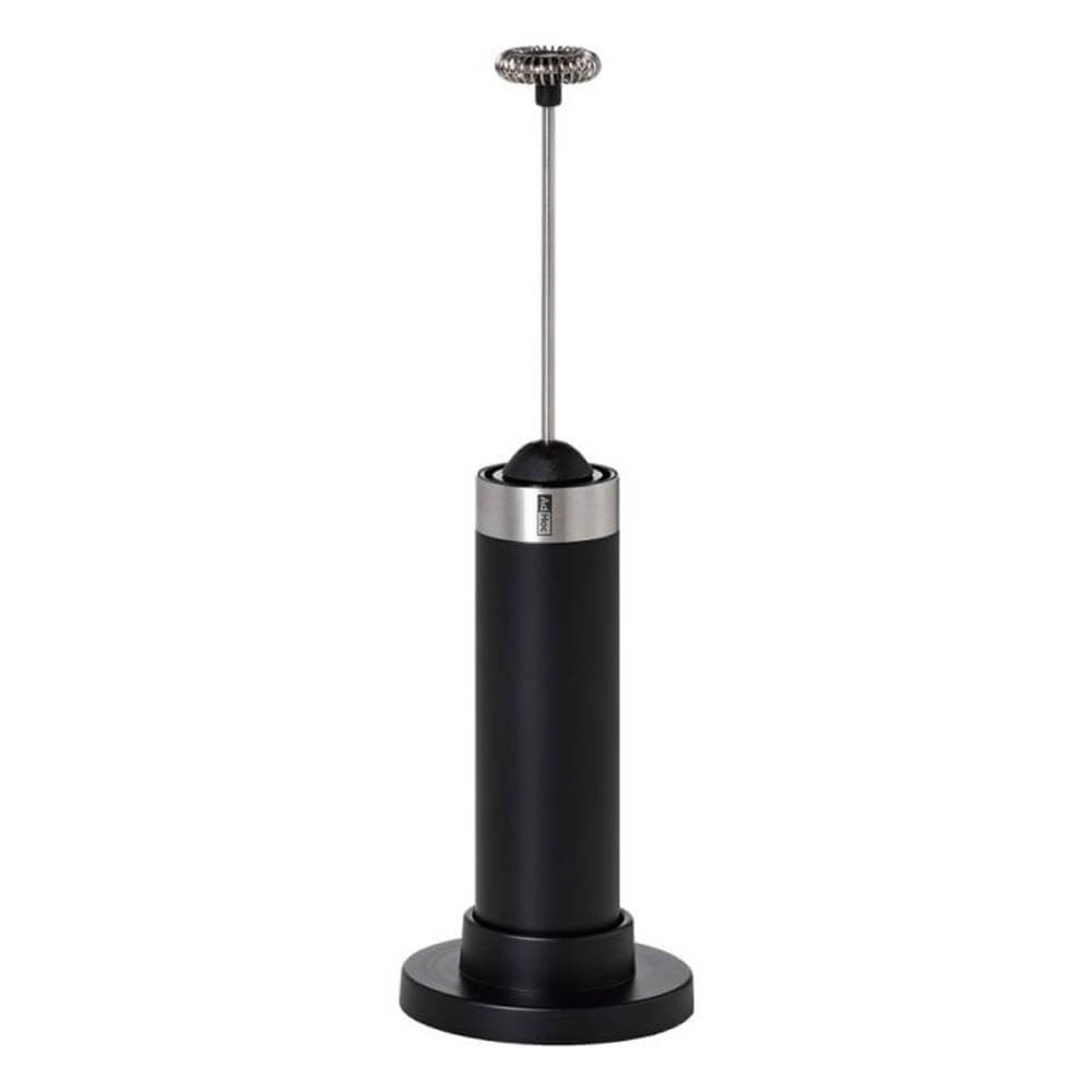 Espumador eléctrico de la marca AdHoc fabricado en acero inoxidable acabado mate y plástico negro, perfecto para facilitar la mezcla de salsas y vinagretas y ayudarte a realizar espuma en la leche.