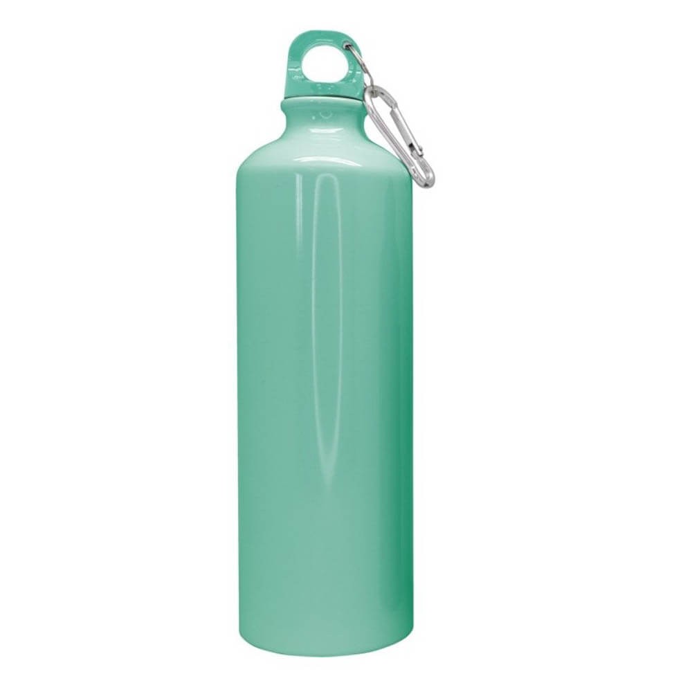 Botella aluminio de la marca Vin Bouquet en color turquesa, perfecta para transportar agua y poder hidratarse en cualquier momento y lugar. Incluye mosquetón.