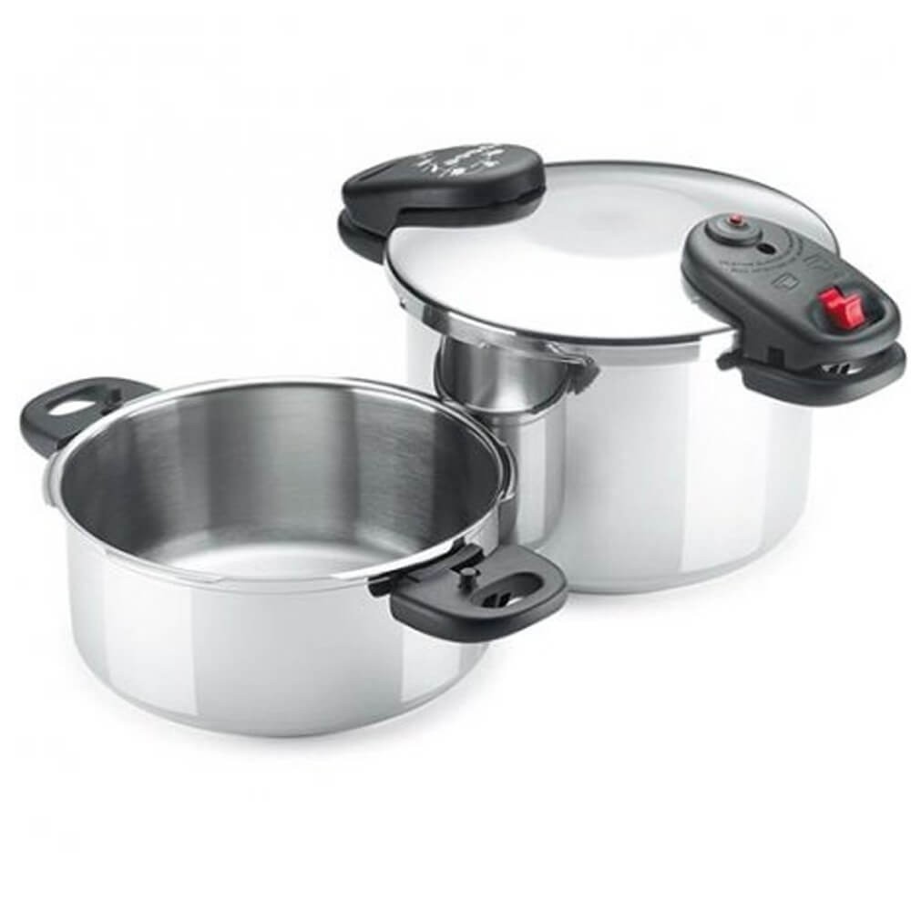Conjunto de 2 ollas súper-rápidas que reducen el tiempo de cocción hasta en un 70%, ahorrando tiempo y energía, y preservando todos los nutrientes de los alimentos.