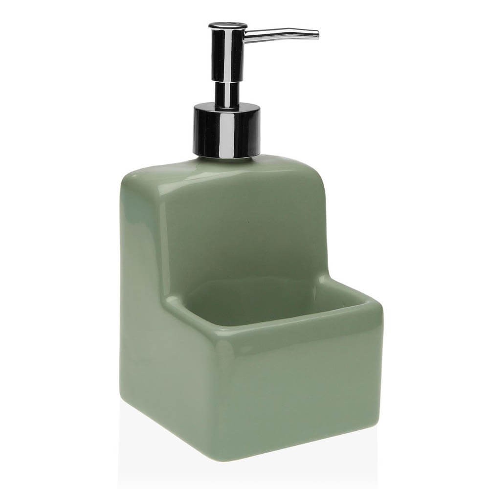 La pieza esta fabricada en cerámica de color verde acabado brillo, gracias a su diseño sencillo podrás combinar el dispensador fácilmente con el resto de accesorios de la cocina.