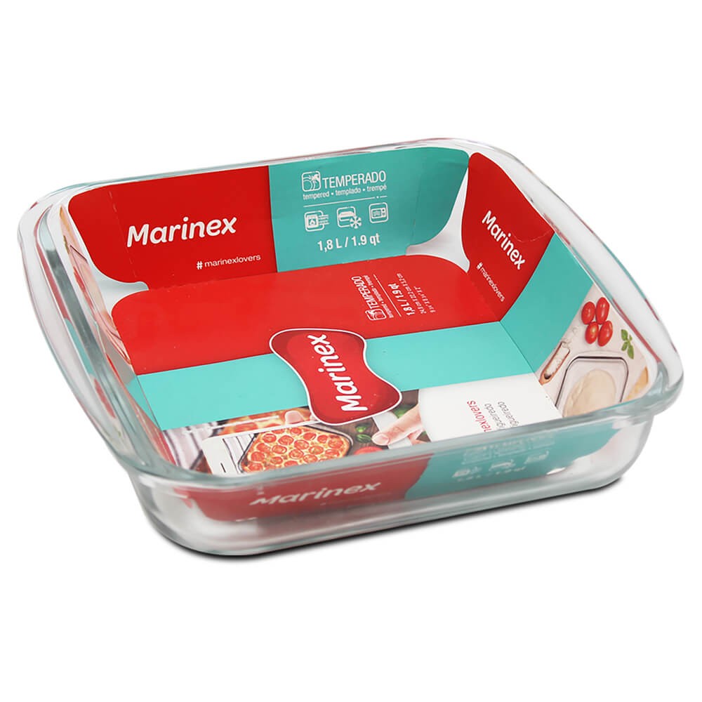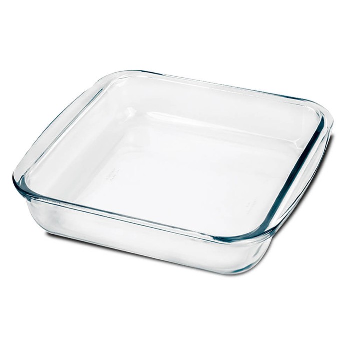 Bandeja de horno cuadrada realizada en cristal transparente con dos prácticas asas para que la saques del horno con seguridad. Podrás hornear alimentos tanto dulces como salados para el día a día o para fiestas, eventos y celebraciones en familia o con amigos.