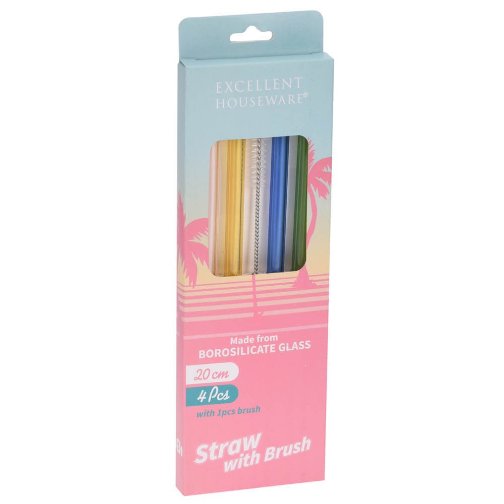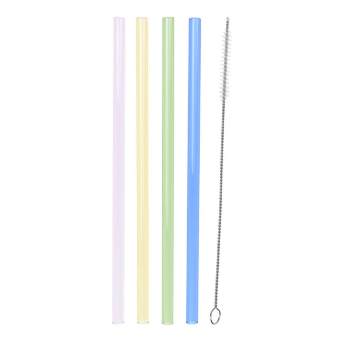 Set con 4 Pajitas de cristal rectas realizadas en cristal borosilicato de colores, incluye un cepillo para una limpieza optima.