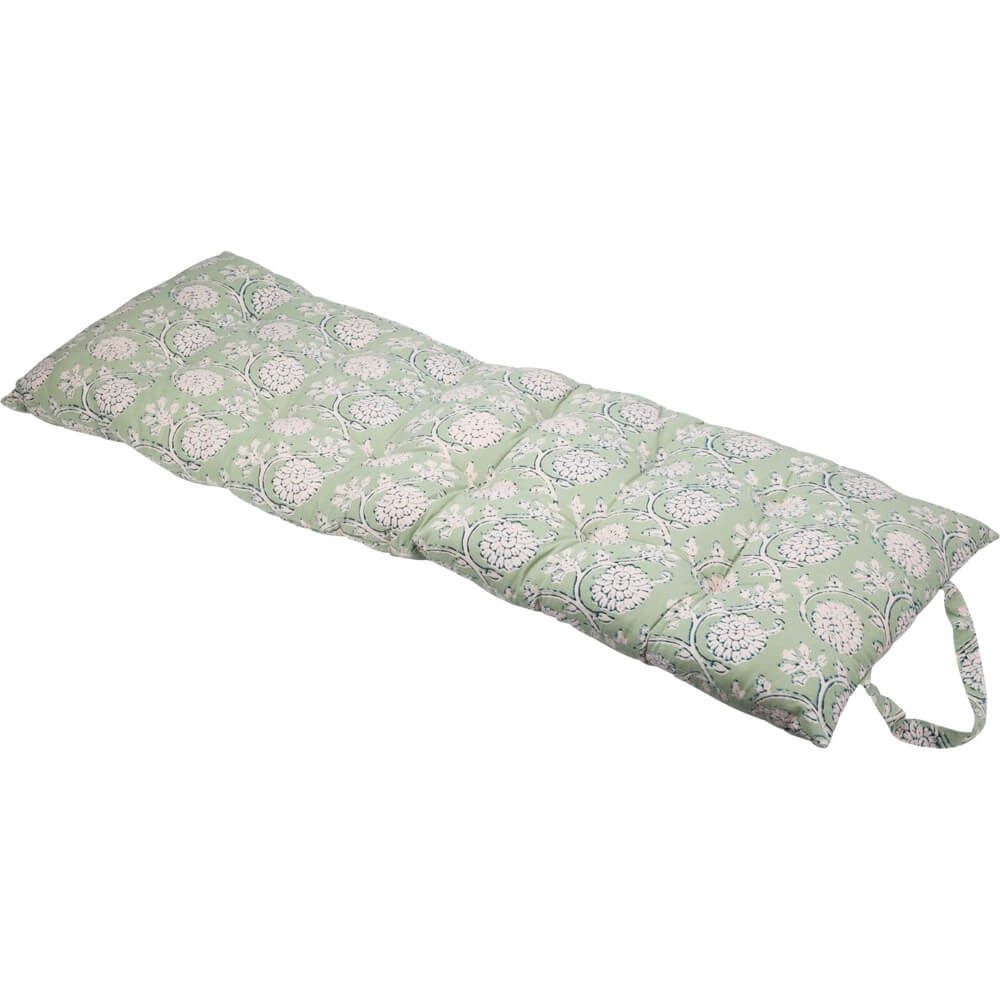 Imagina sumergirte en un jardín de flores etéreas y sentir la calma de la naturaleza abrazándote.Nuestro cojín de banco verde lleva un atractivo decorado block print de flores de estilo étnico que evoca la belleza de la naturaleza en su máxima expresión. Cada detalle está diseñado para transportarte a un mundo de serenidad y relajación.