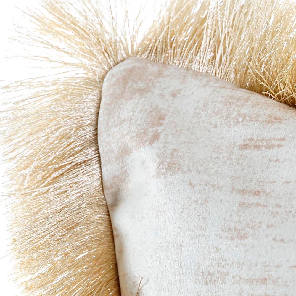 Este cojín decorativo con flecos es ideal para que renueves la decoración de tu sofá de forma rápida y sencilla a la vez que le das un toque cálido y elegante a tu salón gracias al tejido aterciopelado en color crema.