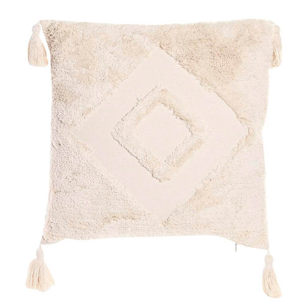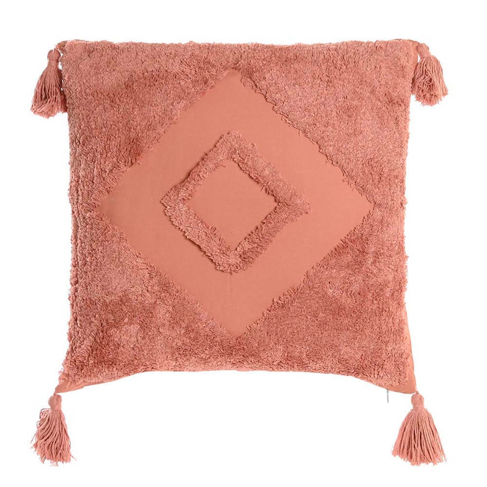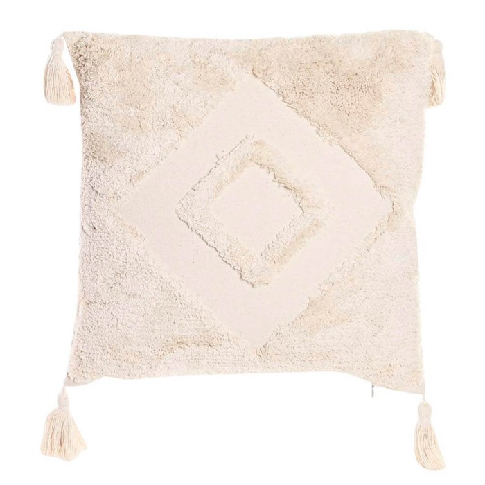 Su diseño geométrico de estilo boho con hilos largos en relieve formando rombos aportará un toque cálido y desenfadado al lugar donde lo ubiques y hará que tu casa este a la última en decoración, combínalo con otros cojines y crea una composición única y especial.