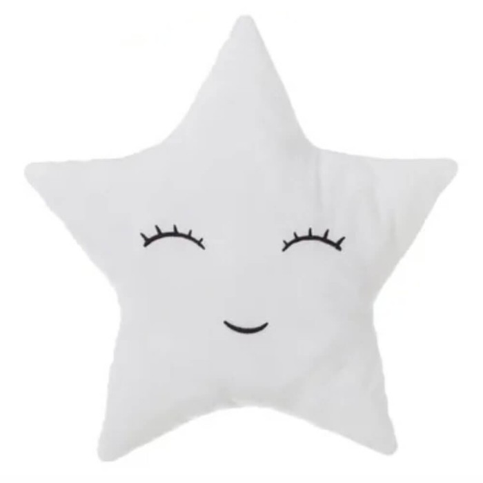 Su diseño entrañable con cara sonriente bordada con hilo negro enamorara a todos los miembros de la familia, podrás colocar el cojín estrella sobre su cama o en una estantería dando un toque especial.