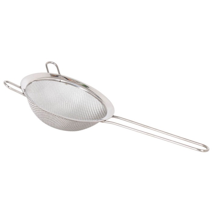 Práctico colador de acero inoxidable con malla para filtrar los alimentos y mango largo de 3mm de grosor para manejarlo cómodamente.
