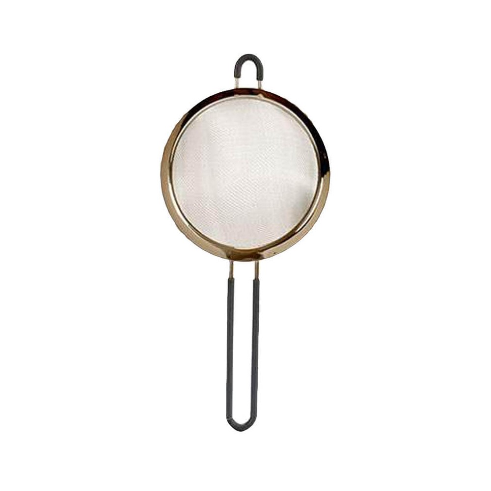 Colador de cocina de 16cm de diámetro fabricado en acero con mango recubierto de silicona, súper práctico para separar sólidos de líquidos.