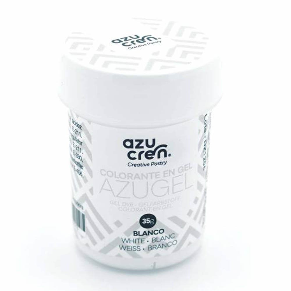 Colorante alimenticio con textura en gel de la gama Azugel de Azucren en color blanco, ideado para teñir y colorear fondant, buttercream, masas, etc.