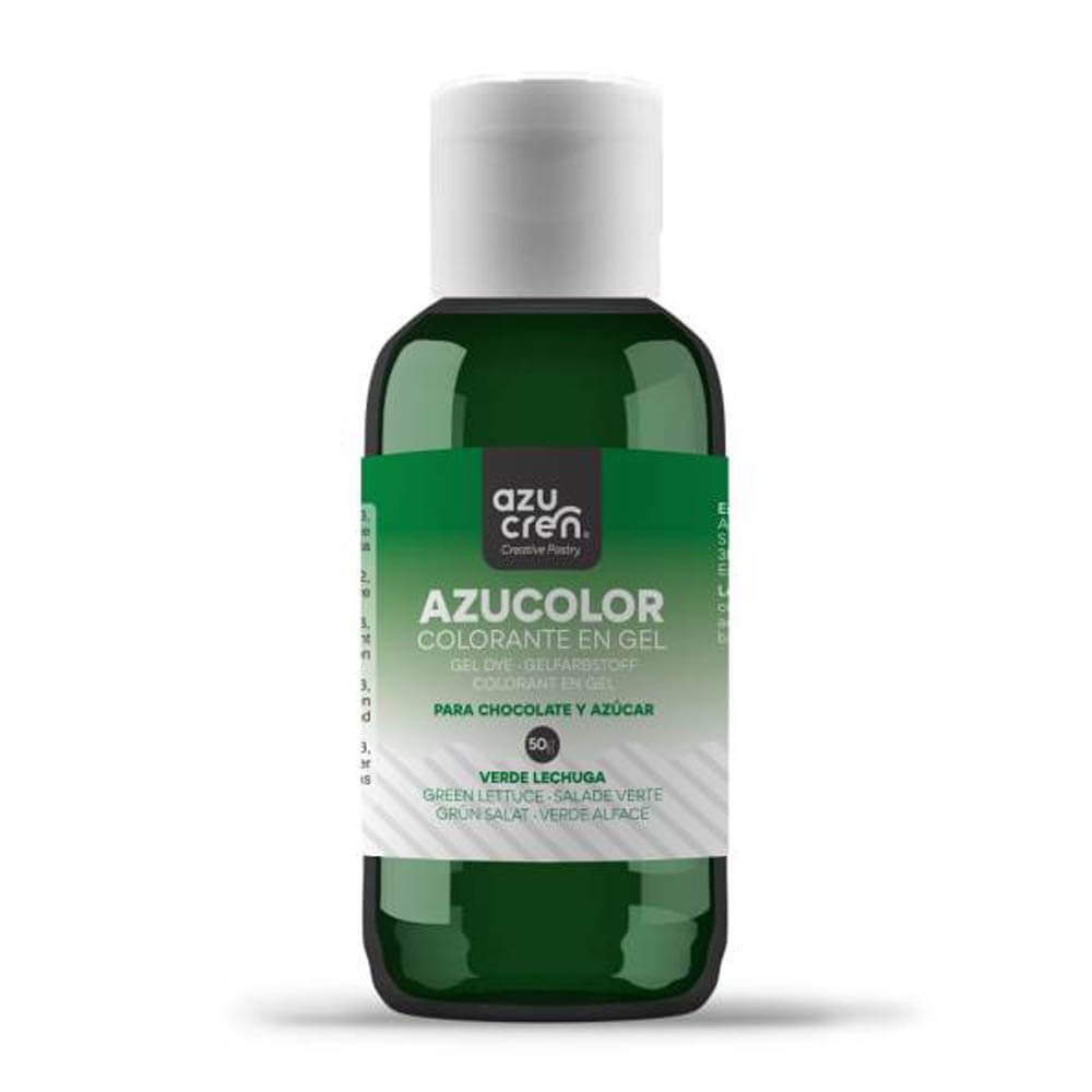 Colorante para chocolate líquido de la marca Azucren en color verde lechuga. Un colorante ideal para teñir azúcar y chocolate.