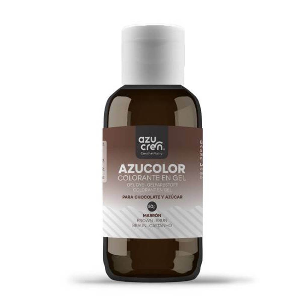 Colorante para chocolate en gel de la marca Azucren en color marrón. Un colorante alimentario especial para teñir azúcar y chocolate.