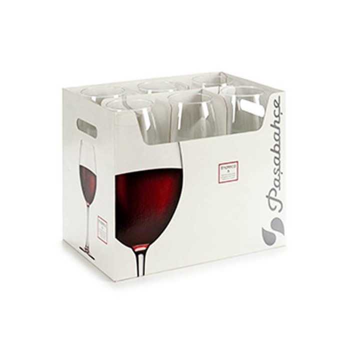 Caja con 6 copas de vino de 61,5 cl de capacidad de la serie ENOTECA, realizadas en vidrio transparente resistente y duradero de la marca Pasabahce con un diseño clásico y atemporal.