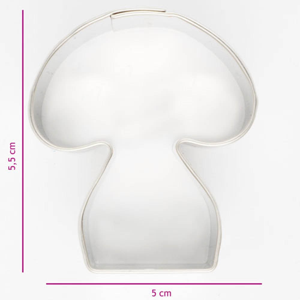 Cortador de galletas realizado en acero inoxidable con forma de seta, ideal para realizar galletas y decorar dulces de otoño.