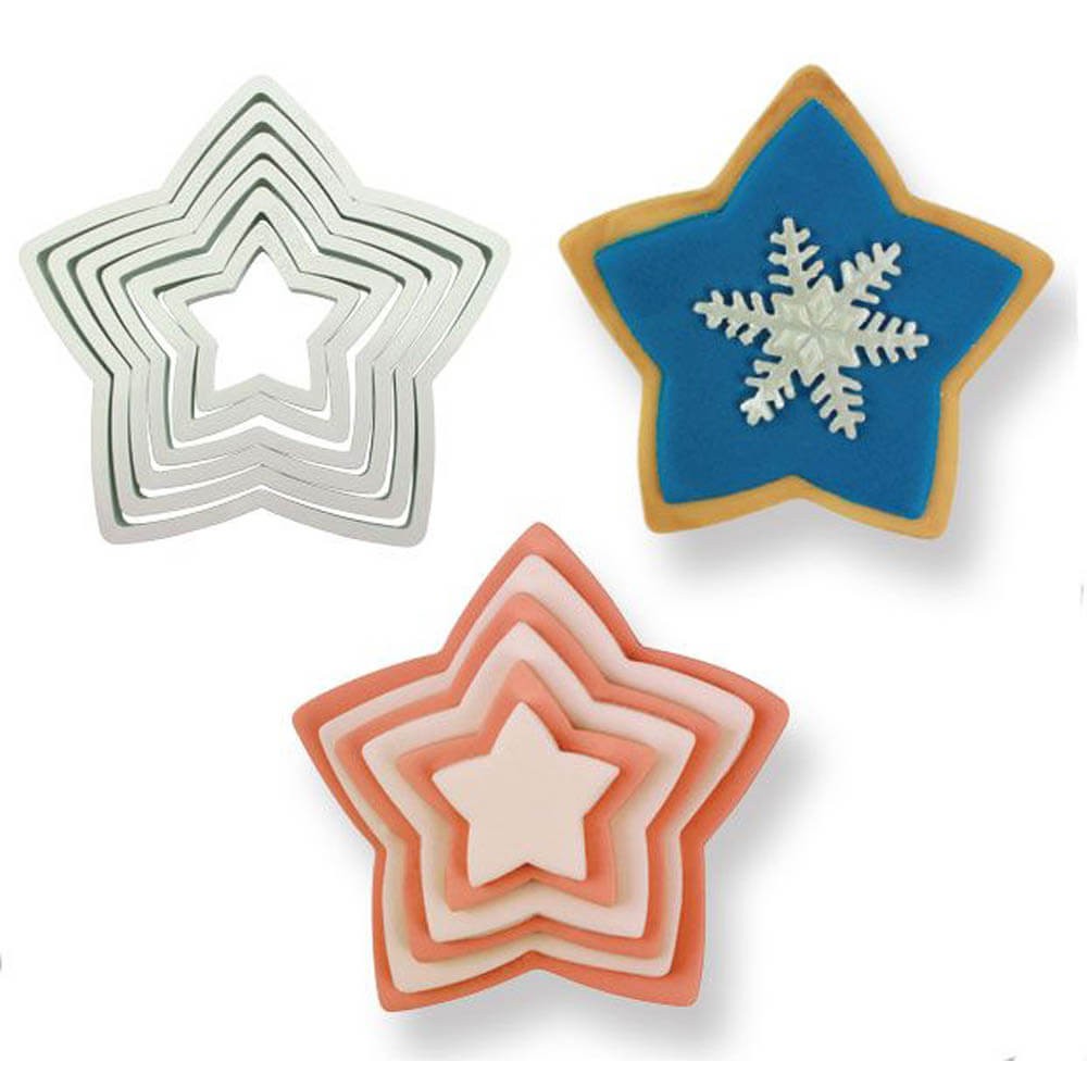 Juego de 6 cortadores de estrellas fabricados en termoplástico ABS resistente, perfectos para hacer galletas, pastas, placas y formas simples.