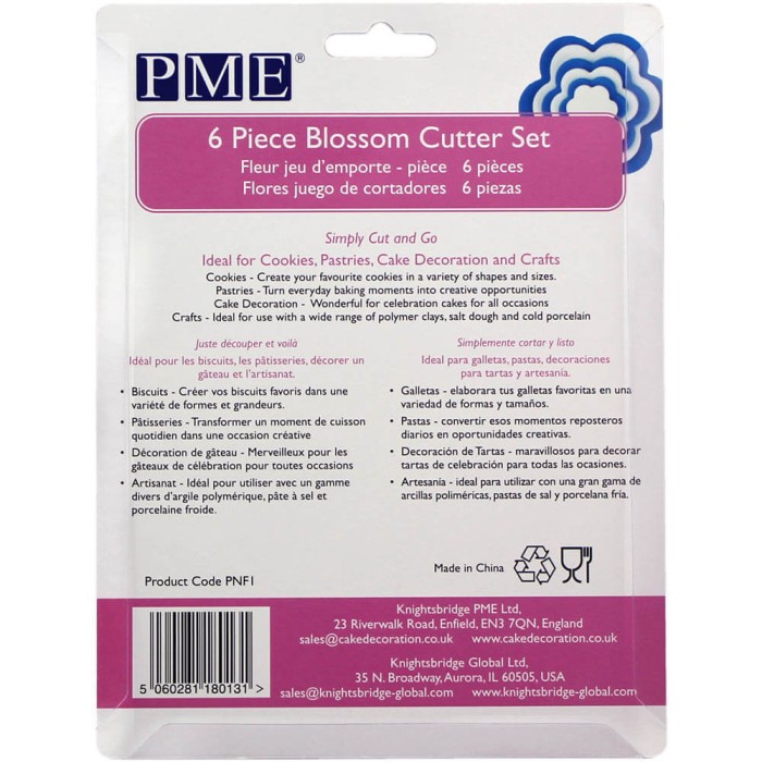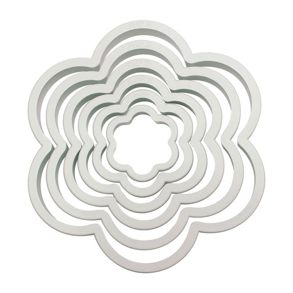 Juego de 6 cortadores de galletas en forma de flor de la marca PME, fabricados en termoplástico ABS resistente de color blanco, fáciles de usar y limpia, perfectos para hacer galletas, pastas, placas y formas simples tanto dulces como saladas.