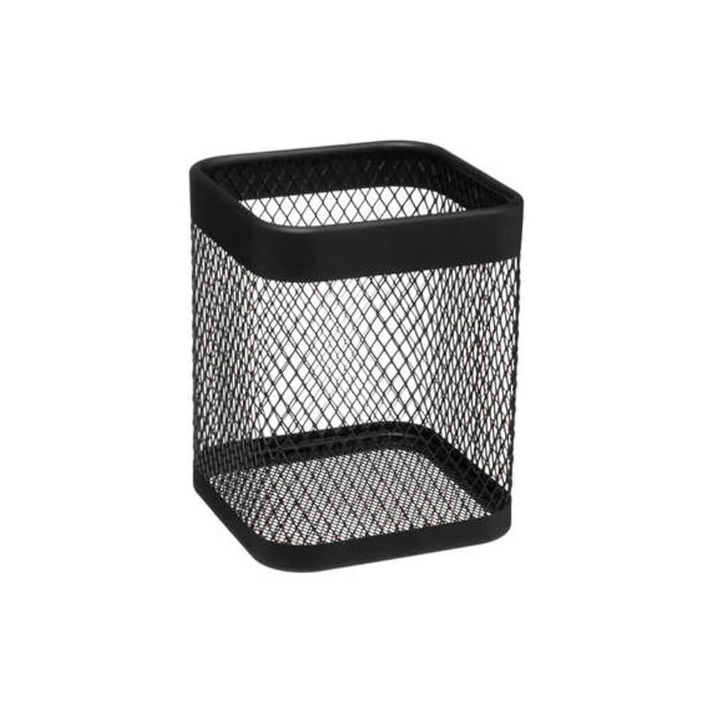 Porta utensilios de cocina en formato cuadrado realizado en hierro de color negro. Un accesorio funcional con un diseño moderno y ligero formado por maya de hierro con la base y la superficie reforzada, ideal para cocinas modernas y contemporaneas.