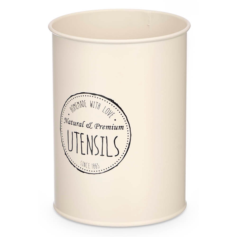 Organiza tu cocina con el bote porta utensilios realizado en metal de color crema. Ideal para almacenar espátulas, cucharones y espumaderas. Estilo retro y gran durabilidad.