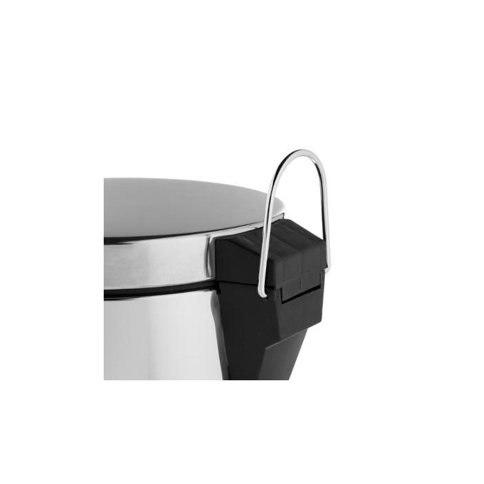 Cubo de basura de 12 litros con cuerpo de hierro en color plata, cuenta con un cubo interior extraíble realizado en polipropileno negro con asa para facilitar el vaciado. Esta papelera para cocina tiene un pedal en la parte inferior para una apertura cómoda y rápida sin necesidad de tocar la tapa.