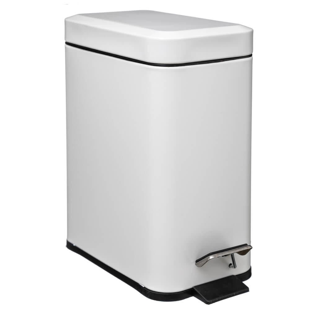 Papelera de baño rectangular en color blanco con 5 litros de capacidad, ideal para desechar papeles, envases vacíos, algodones, etc.