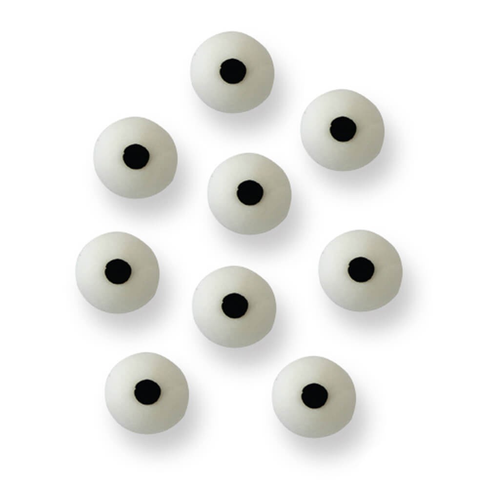 24 ojos de azúcar hechos a mano de la marca PME listos para usar, perfectos para decorar todo tipo de elaboraciones dulces, aplícalos en las tartas, pasteles y cupcakes para dar vida a los personajes de una forma rápida y sencilla.