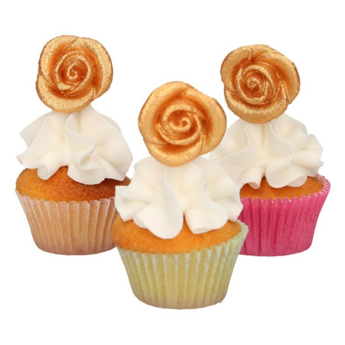 Con estas hermosas rosas en color oro de la marca FunCakes realizadas en mazapán podrás decorar de forma rápida y sencilla tus postres.
