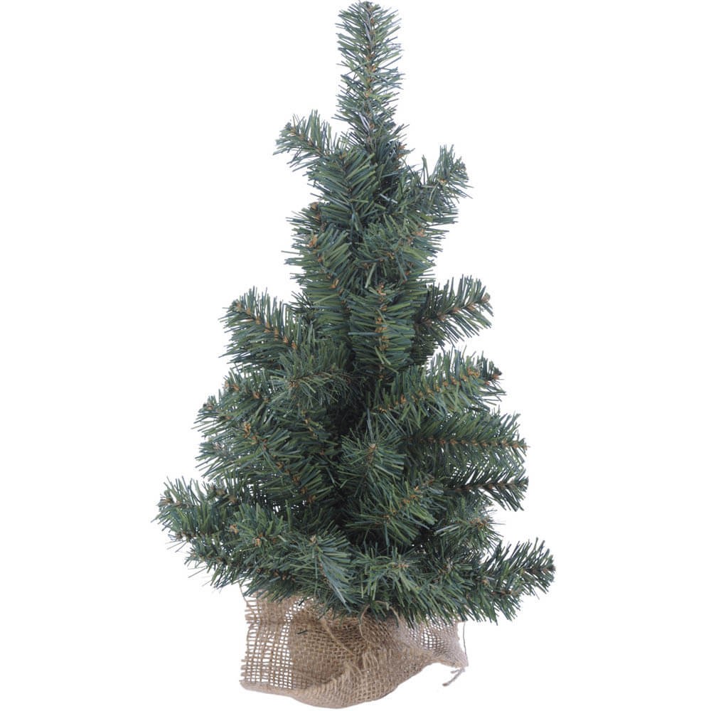 Árbol de Navidad de 45 cm de altura formado por ramas artificiales de pino con base de tejido de saco. Diseño rústico para dar un toque cálido al hogar. Su tamaño es idóneo para espacios reducidos.