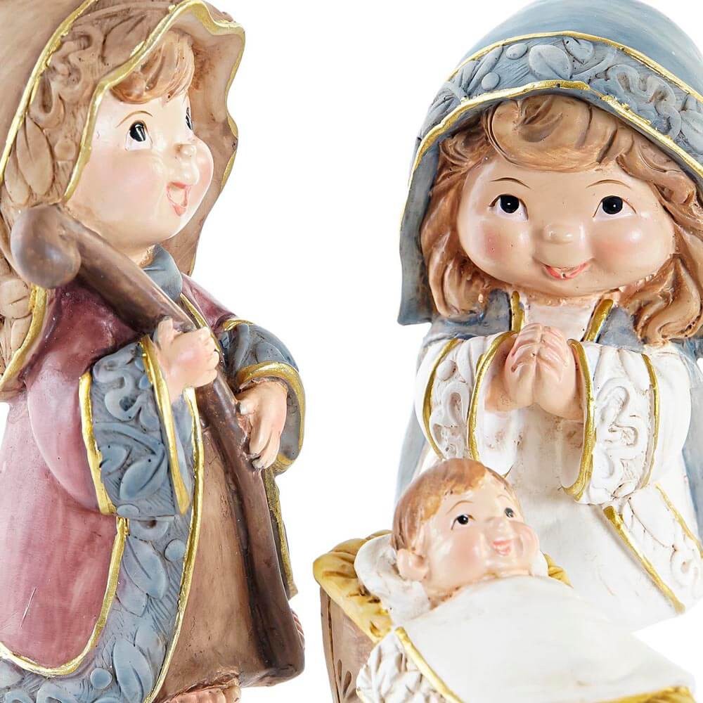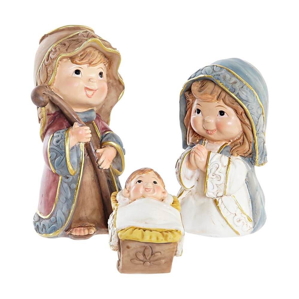 Un nacimiento sencillo formado por las figuras principales del Belen, la Virgen María, San José y el niño Jesús, perfecto para que decores tu casa durante la Navidad, fácil de colocar y de mover.