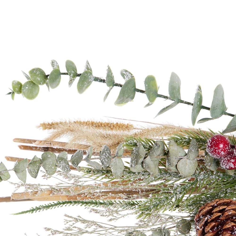 Decoración Navideña formada por hojas secas, piñas y bayas rojas para que inundes tu casa de un espíritu navideño, cálido y acogedor desde la entrada.