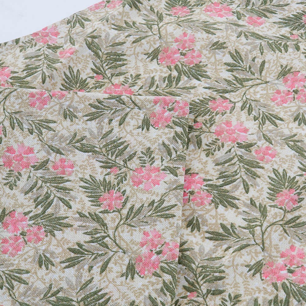 Conjunto compuesto por un delantal de cocina con cintas ajustables al cuerpo para adaptarlo a diferentes alturas y un paño de cocina para adulto, ambas piezas confeccionadas en tejido de algodón resistente con un bonito estampado de flores. 3 colores según disponibilidad, verde, rosa o azul claro.