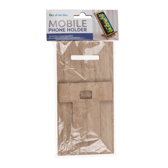 Práctico soporte para móviles tipo atril fabricado en madera mdf de color natural, ideal para realizar video llamadas, ver películas, videos, recetas de cocina y mucho más.