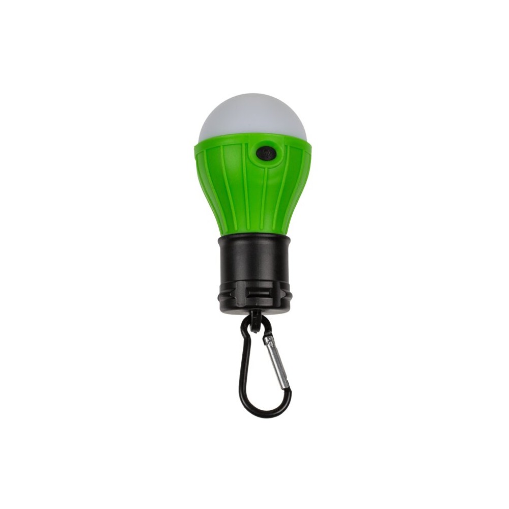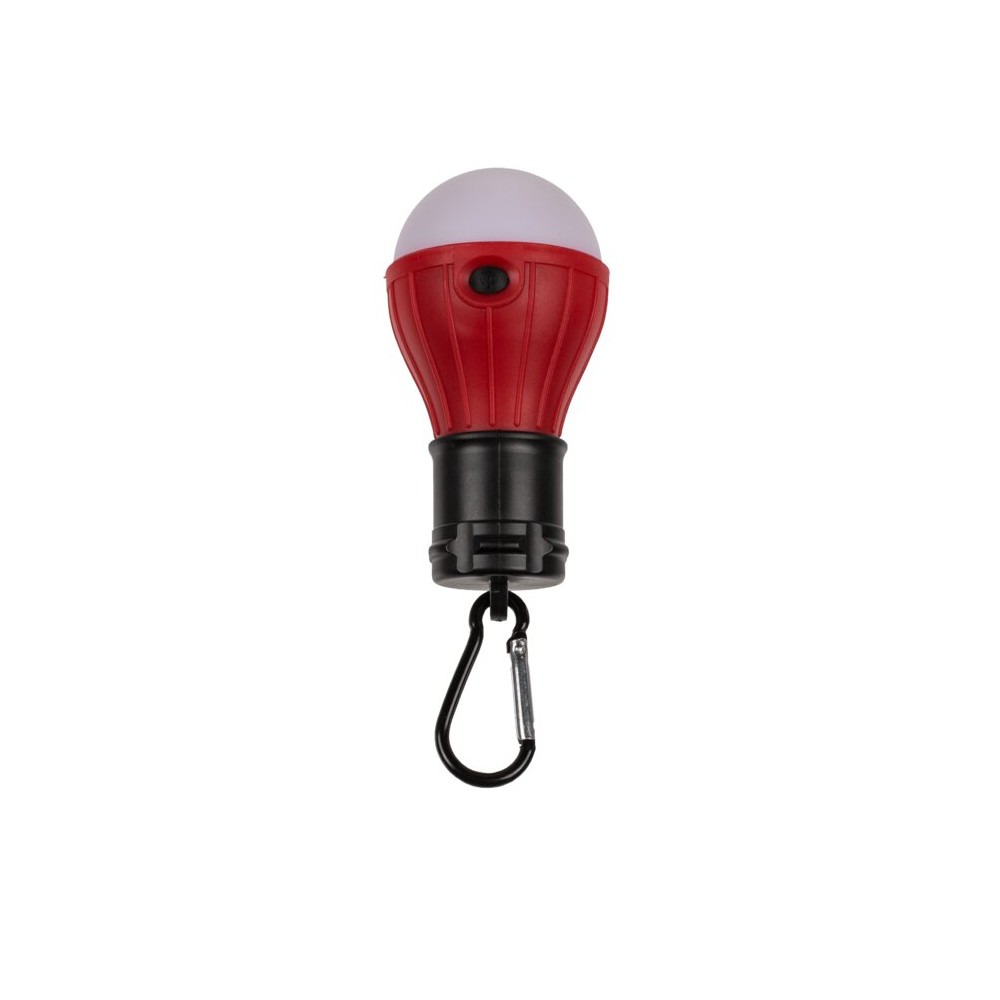 Práctica y versátil luz de camping con gancho y mosquetón. Dos niveles de luminosidad y función intermitente. Disponible en varios colores. 6cm
