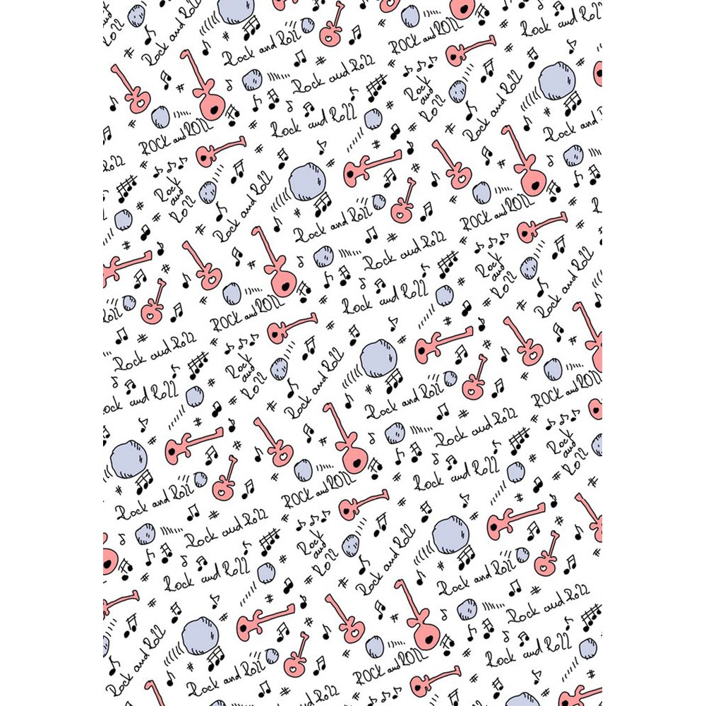 Papel de azúcar tamaño A4 diseño ROCK&ROLL decorado con notas musicales sobre fondo blanco.