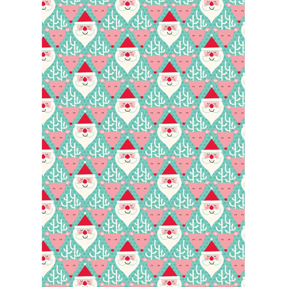 Papel de azúcar tamaño A4 diseño navideño decorado con caras de Papa Noel y renos sobre fondo liso.