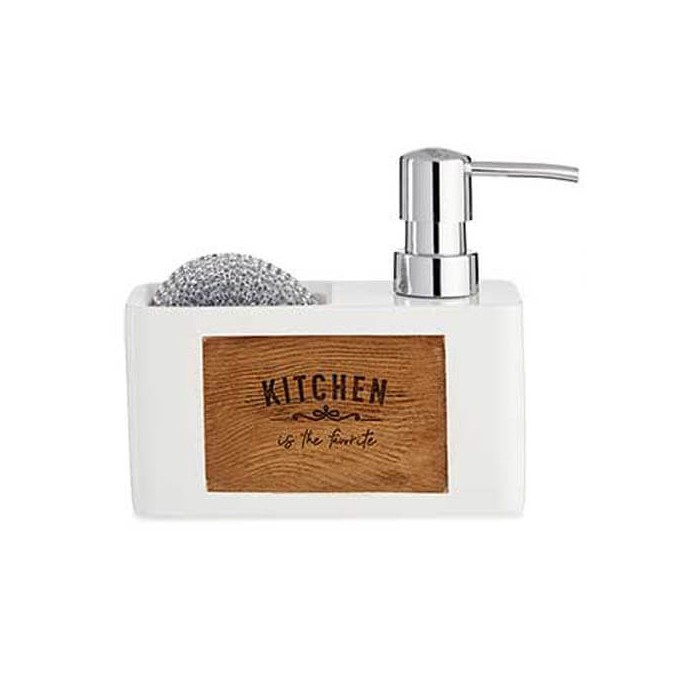 Dispensador de jabón líquido para cocina con espacio de almacenaje para estropajo, diseño kitchen en color blanco.