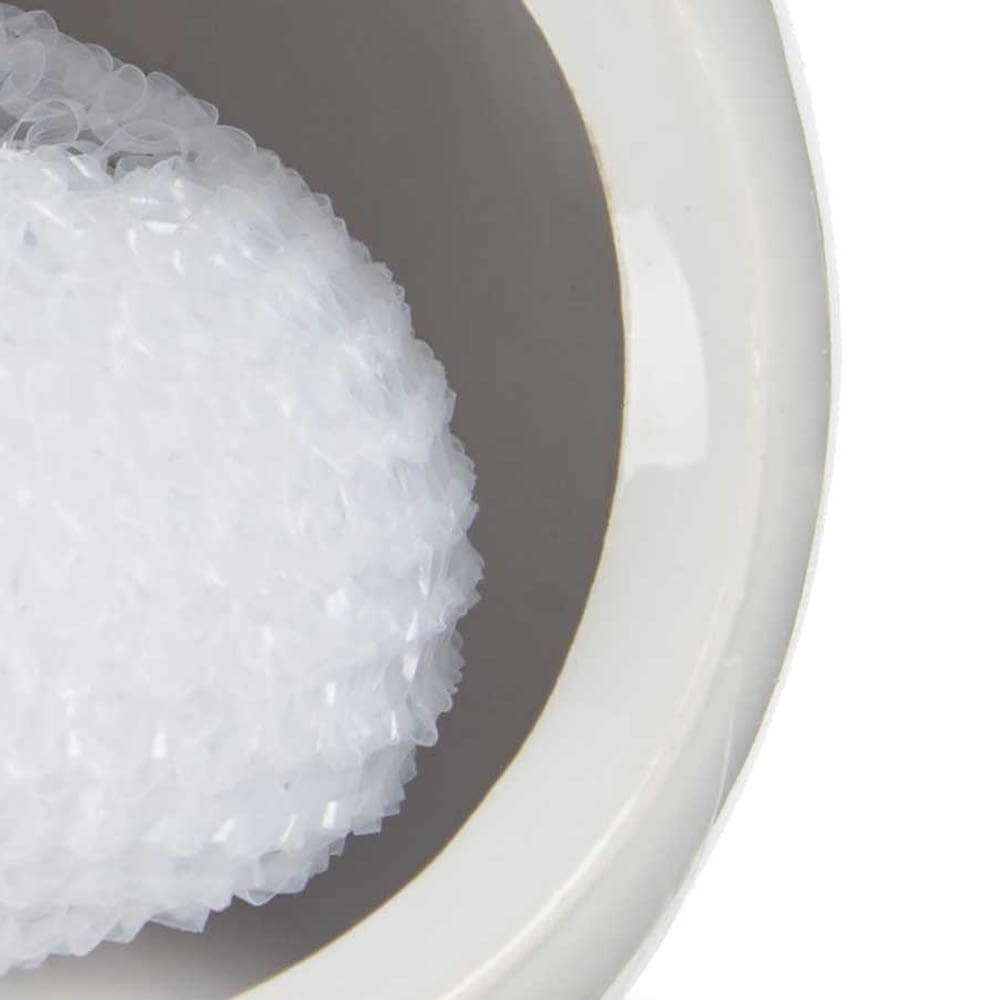 La cerámica blanca es resistente y duradera, fácil de limpiar y mantener, lo que garantiza que tu estropajero siempre luzca impecable. Además, su diseño abierto permite una ventilación adecuada, ayudando a mantener los estropajos secos y libres de malos olores.