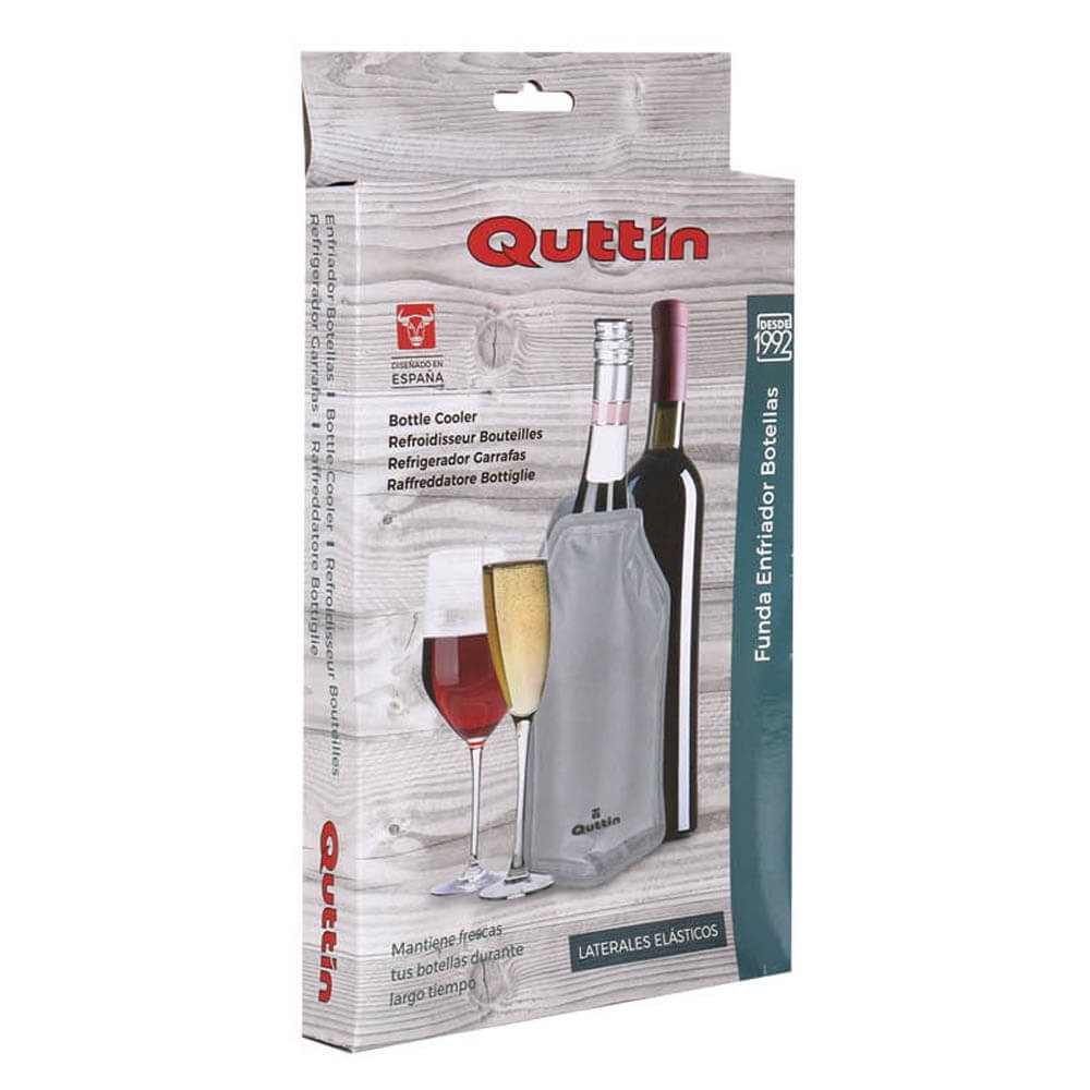 Funda enfriadora con tiras elásticas para ajustarse a la perfección a diferentes tipos de botellas. La funda es un accesorio super práctico para mantener la temperatura optima de la botella durante más tiempo sin necesidad de usar hielos, contiene en su interior un gel congelable.