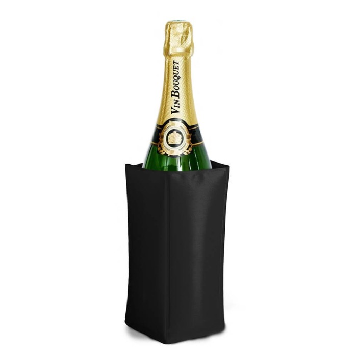 Funda enfriadora para botellas de vino de la marca Vin Bouquet en color negro, diseñada para enfriar y mantener las botellas de vino en la mesa con una temperatura optima durante varias horas y así evitar el uso de cubitos de hielo.