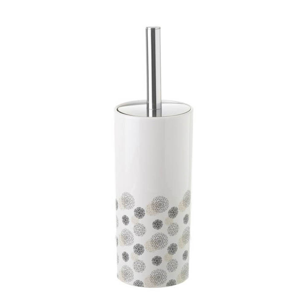 La escobilla wc incluye soporte cilíndrico realizado en cerámica resistente con un bonito decorado de estilo clásico, indispensable para contener la escobilla y poder situarla al lado del inodoro.