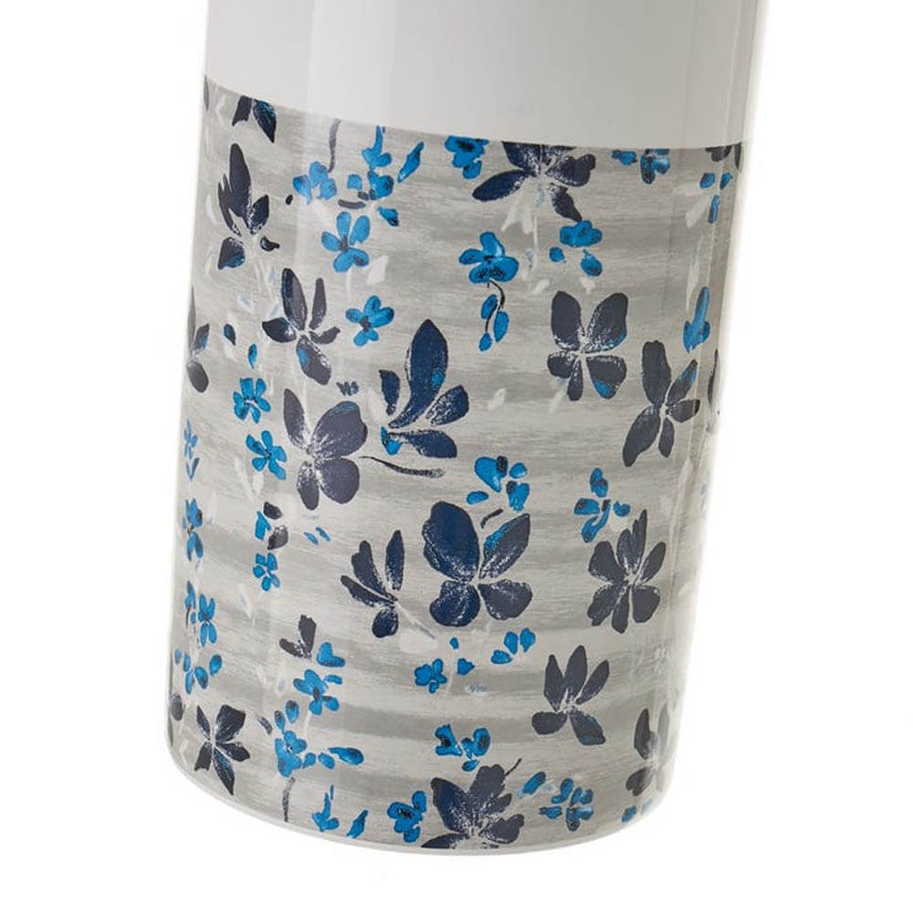 La escobilla wc incluye soporte cilíndrico realizado en cerámica resistente blanca decorada con flores, indispensable para contener la escobilla y poder situarla al lado del inodoro.