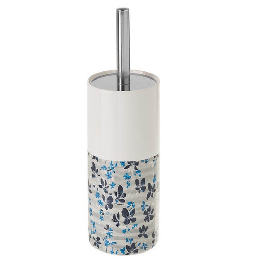 Escobilla de baño con un diseño floral en tonos azules, perfecta para limpiar el interior del inodoro y mantener el baño libre de malos olores.