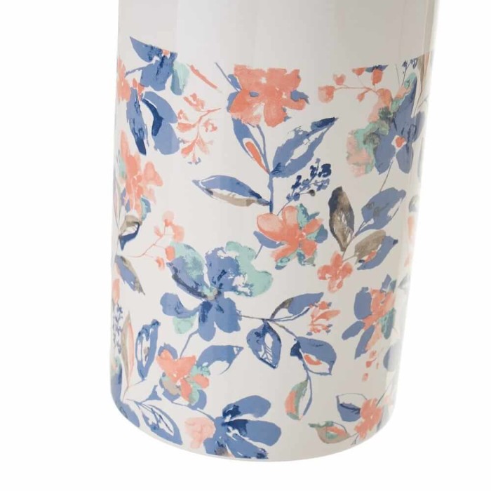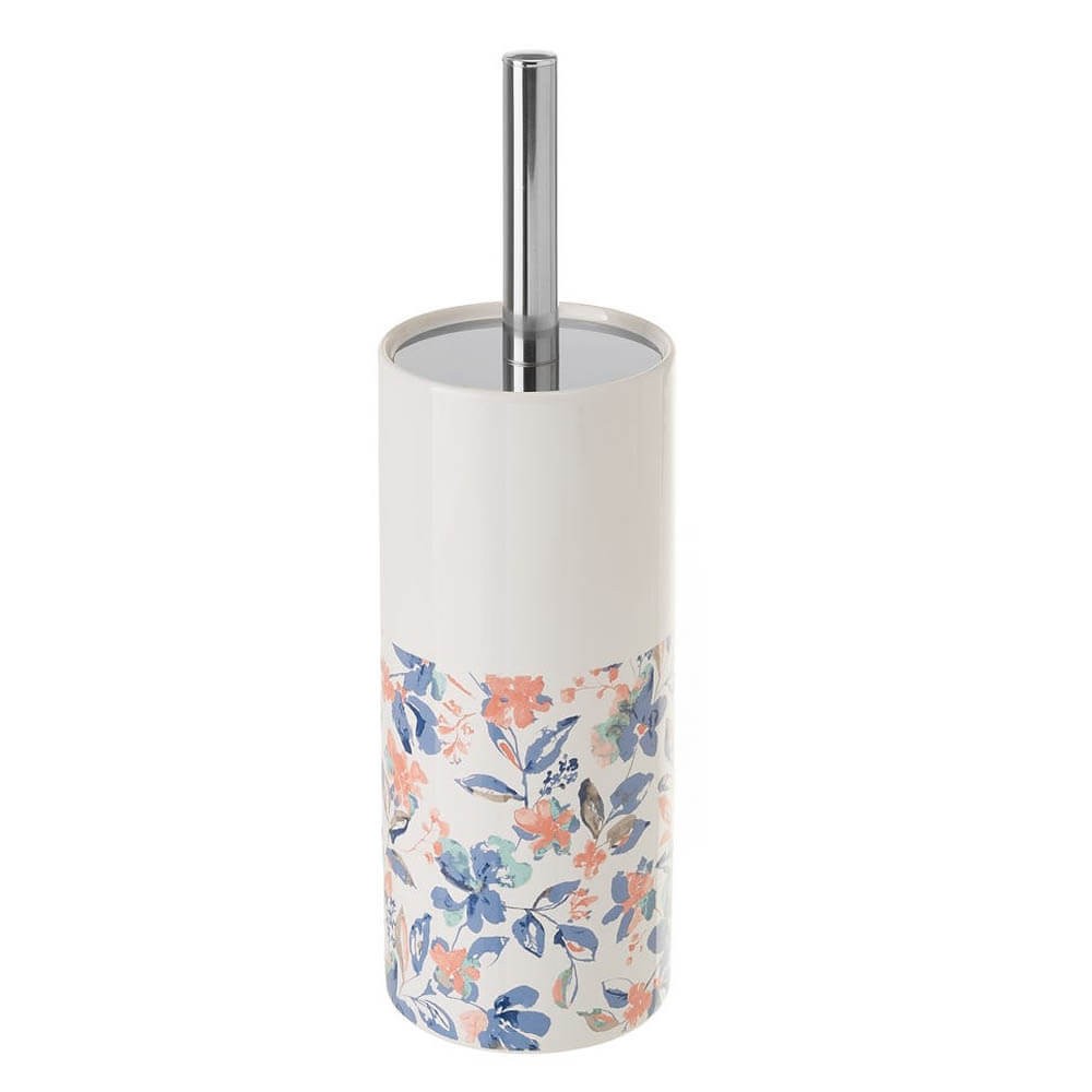 Escobilla de baño Modelo floral con un diseño de flores y hojas en color azul y salmón sobre fondo blanco, perfecta para limpiar el interior del inodoro y mantener el baño libre de malos olores.