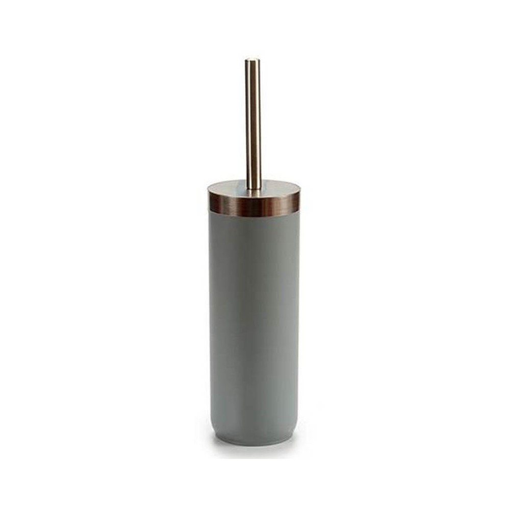Escobilla para el baño con soporte de plástico gris con embellecedor metálico. Un accesorio de baño imprescindible para limpiar el inodoro y mantener el baño limpio y libre de malos olores.