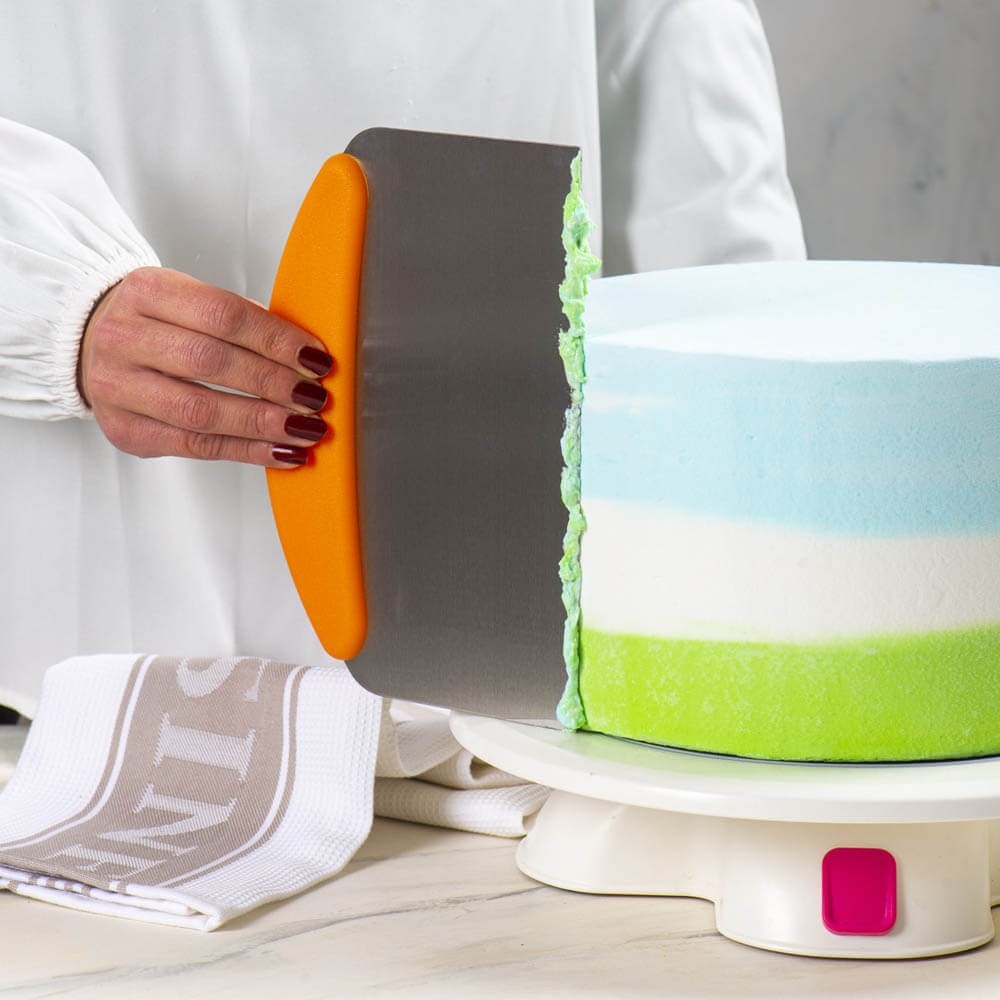 El diseño de la espátula, con un mango ergonómico y antideslizante, proporciona un agarre cómodo y seguro, facilitando el alisado de los bordes de crema en las tartas. La hoja de más de 20 cm de largo es ideal incluso para pasteles muy altos, permitiendo un alisado uniforme y preciso.