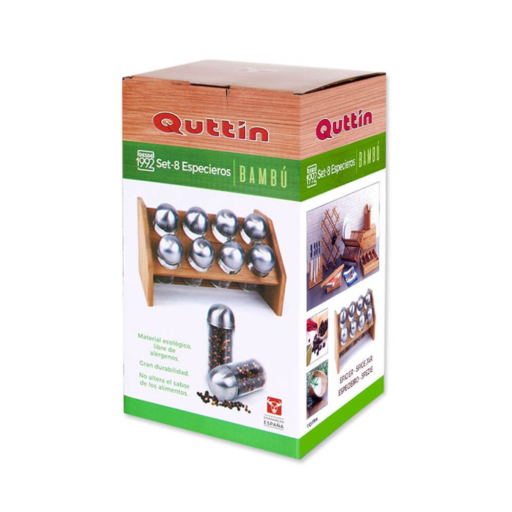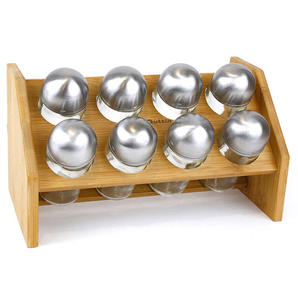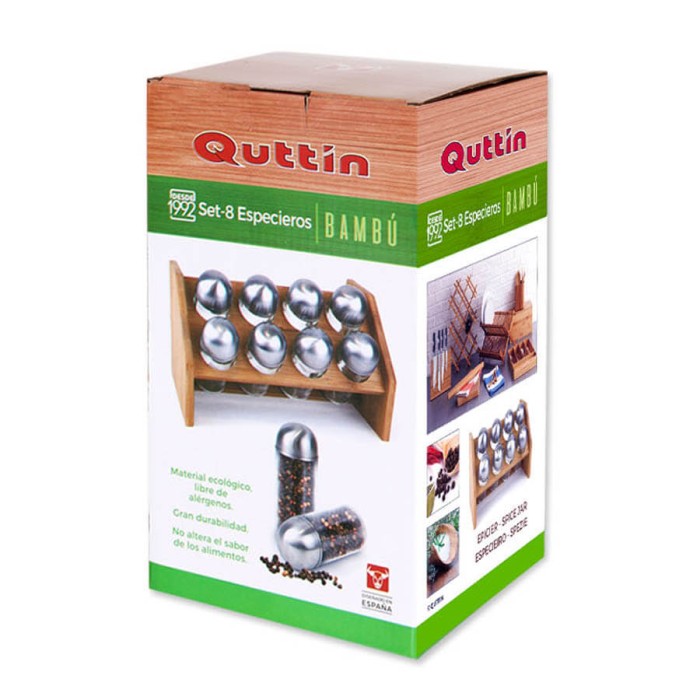 Los botes viene en un soporte de bambú para colocar sobre la encimera y tener siempre a mano las especias para cuando las necesitas.