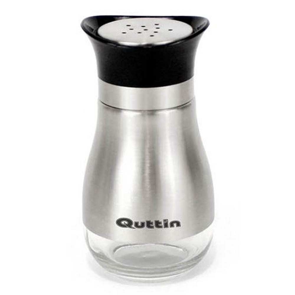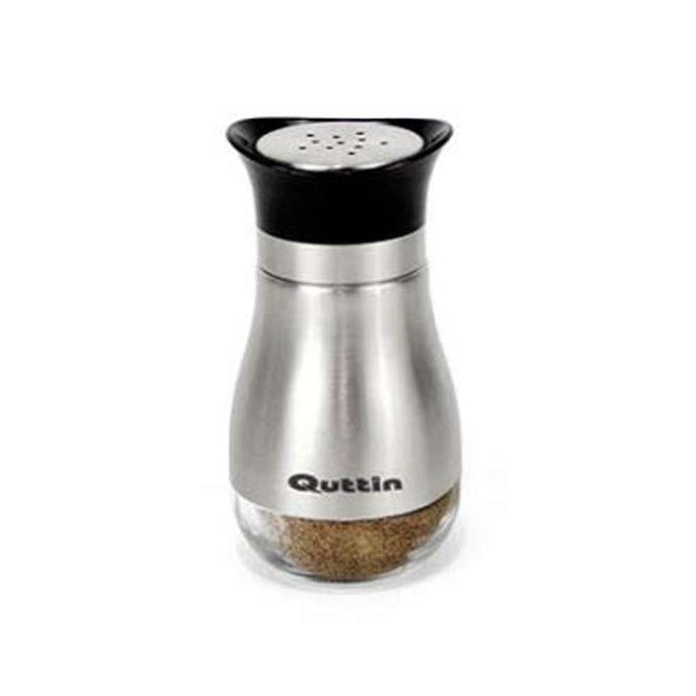 Especiero de acero inoxidable y cristal con un diseño cómodo y sencillo.