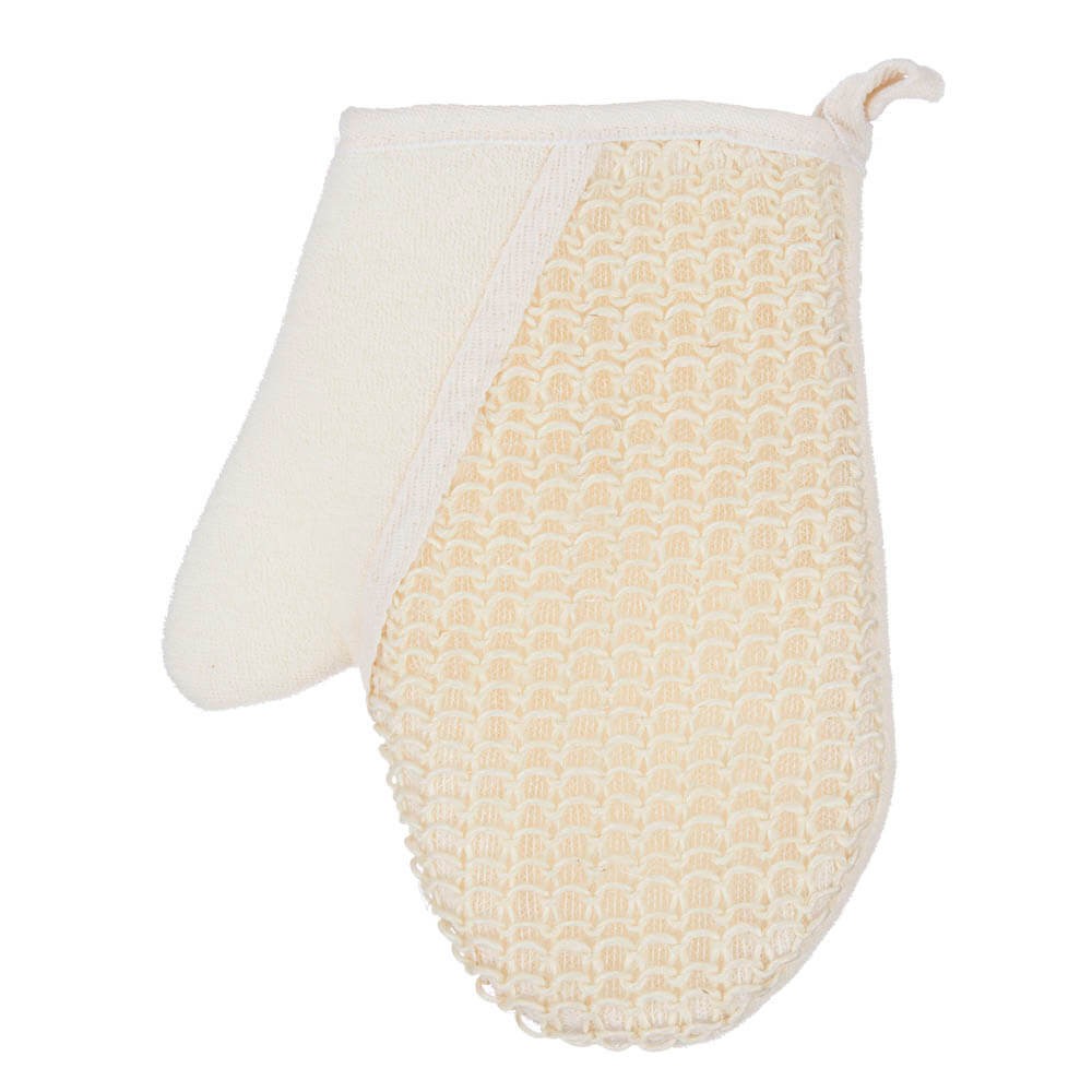 Manopla de baño de sisal trenzado para exfoliar la piel. Con trabilla para colgar. Medidas: 2 x 17,5 x 22,7 cm.