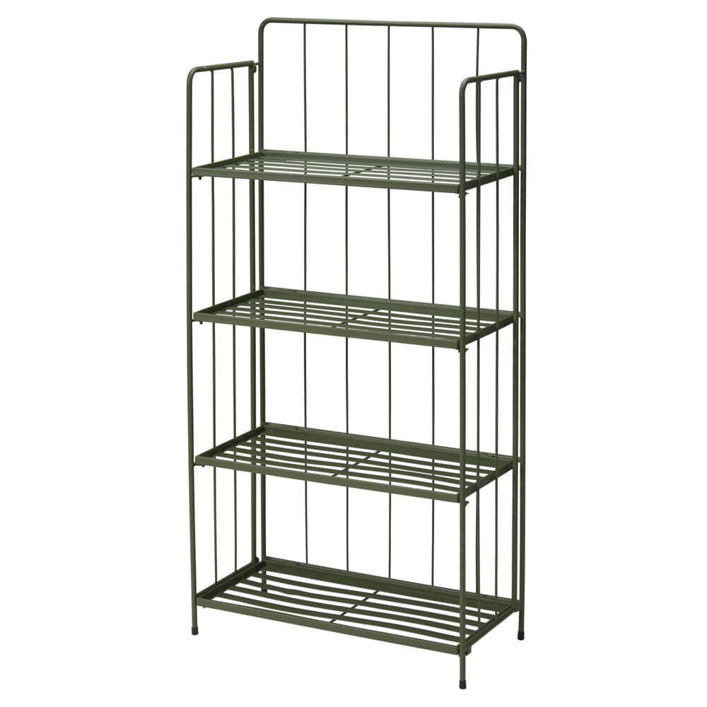 Una estantería auxiliar realizada en metal acabado verde con 4 baldas para que pongas plantas, jarrones y diferentes objetos para dar un toque especial y decorar tu hogar.